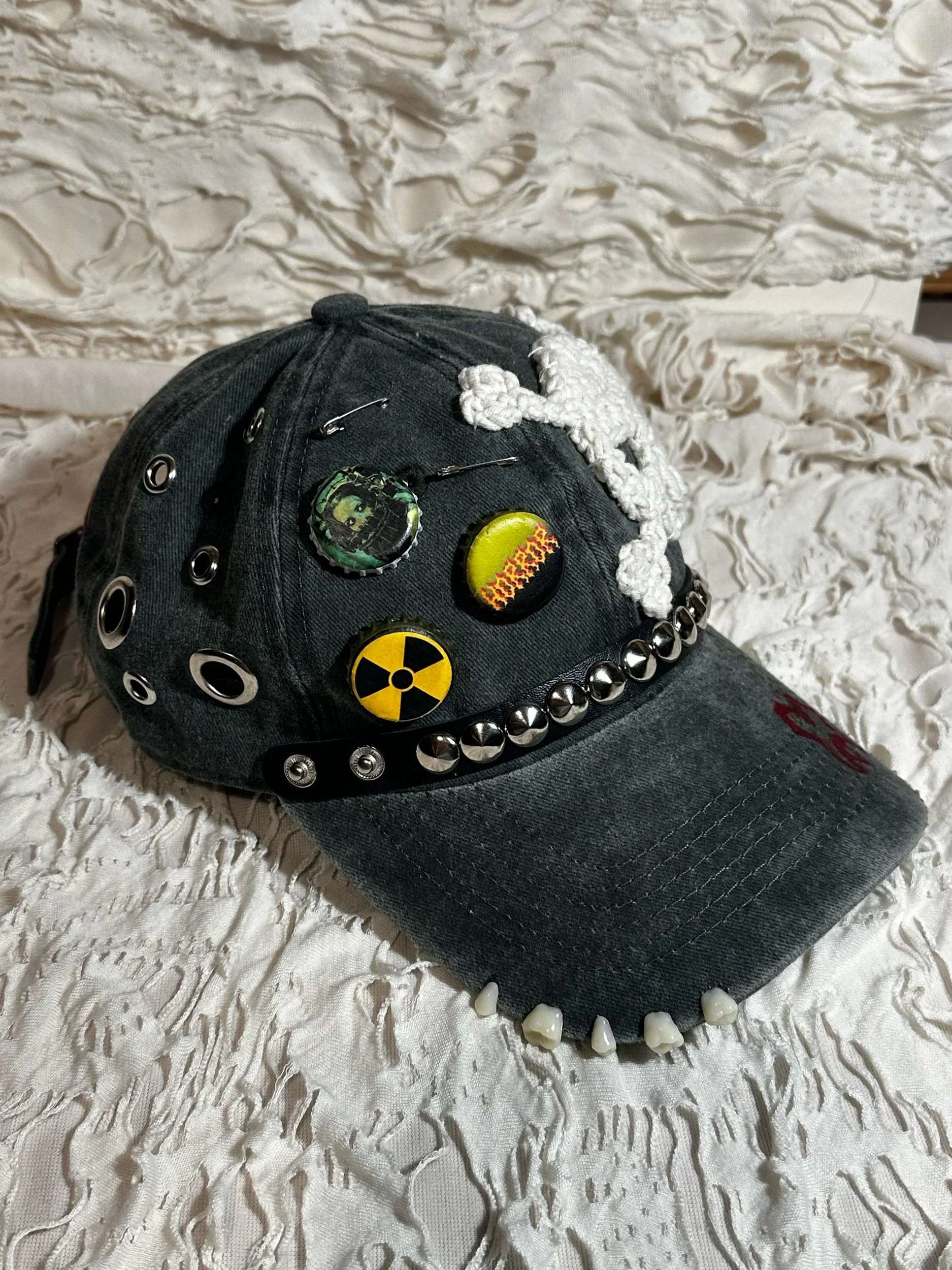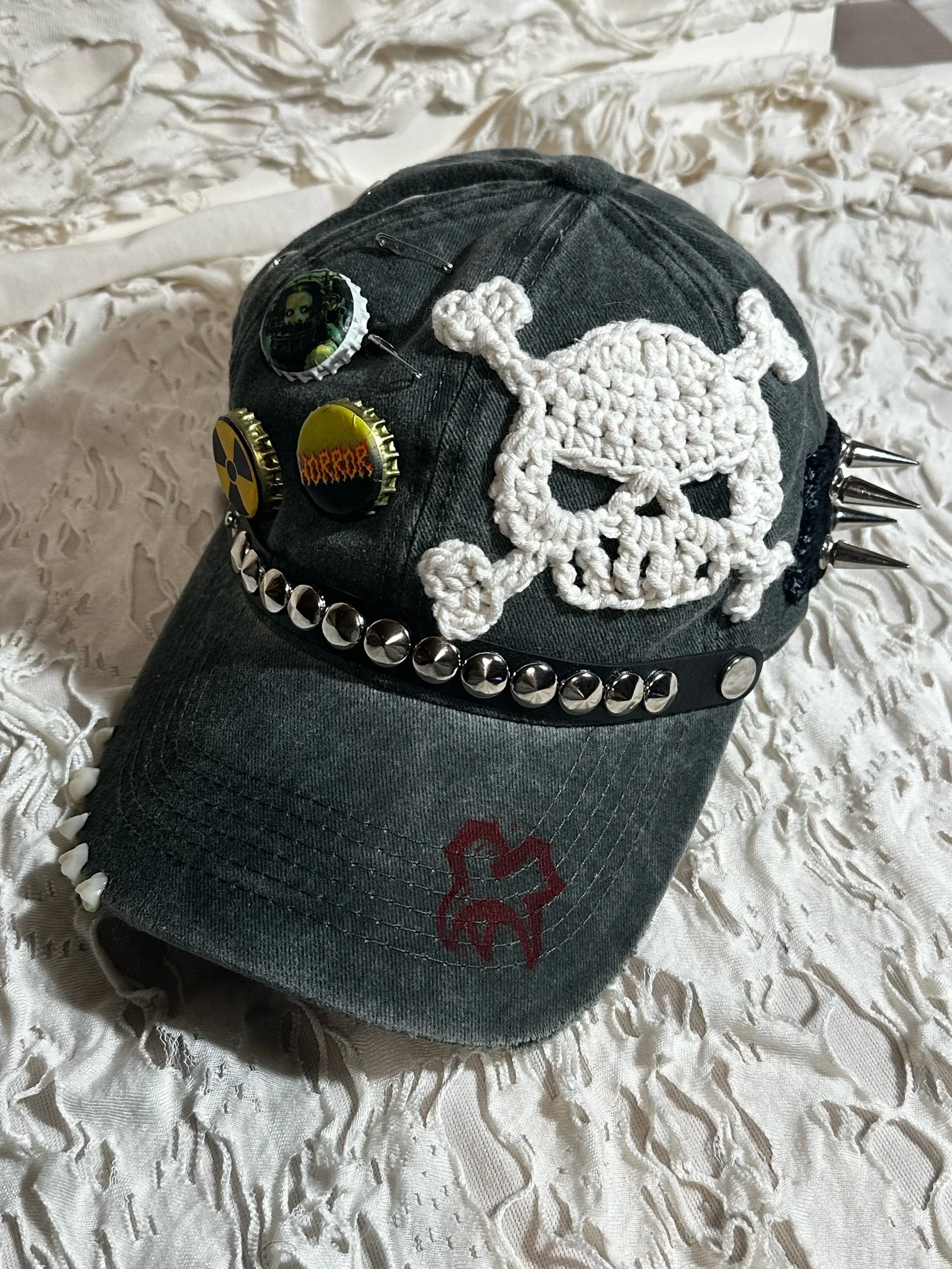 Shop › Horror hat Image 1 of 3 Image 2 of 3 Image 3 of 3 Horror hat $60.00 1/1 custom hat Crochet, hardware and hand printed details Add To Cart Added! 1/1 custom hat Crochet, hardware and hand printed details Reviews Reviewer Name Review Date Star Rating Description Posted on Etsy Product Show More