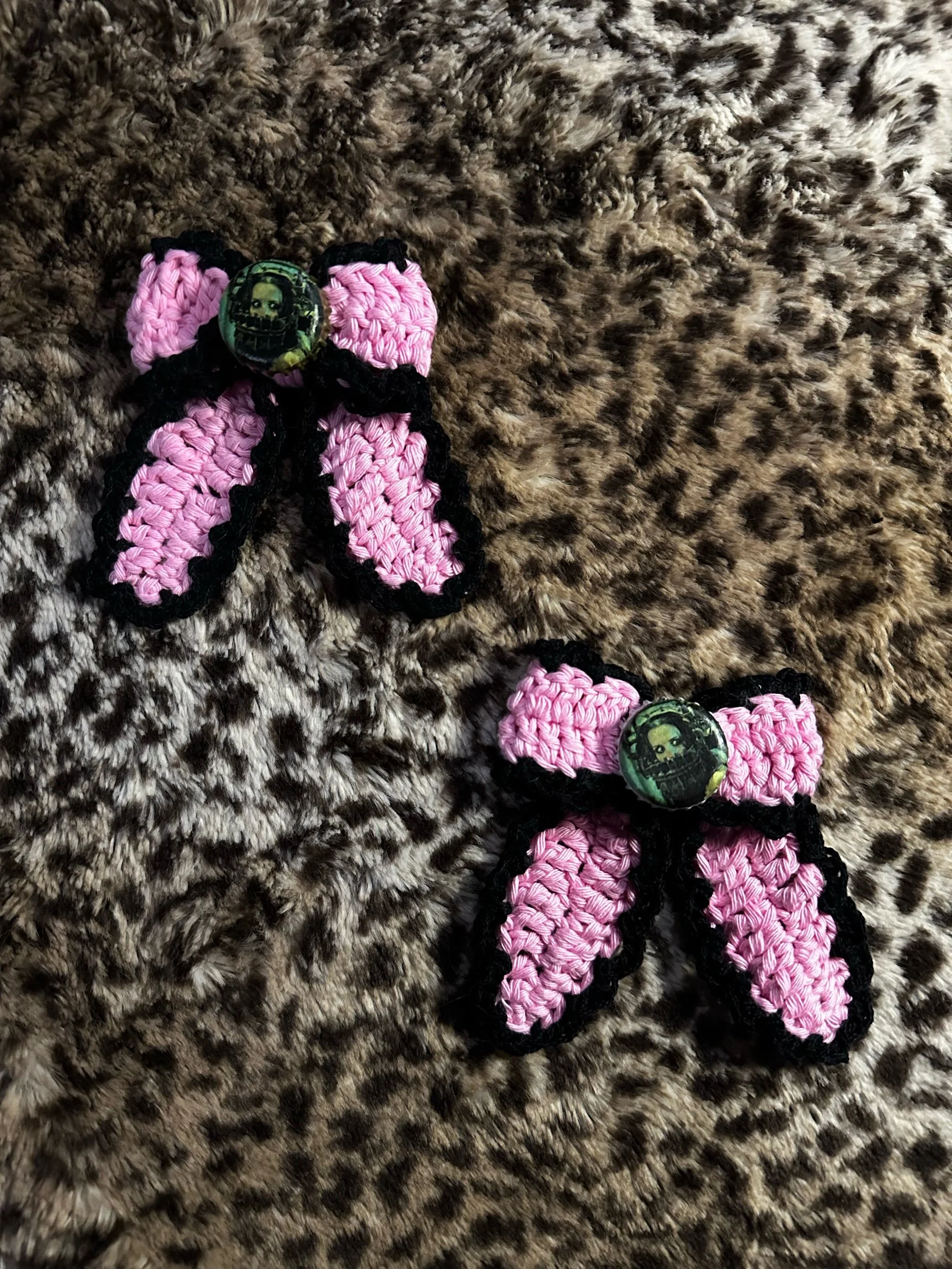 Shop › Horror Hair Bows Image 1 of 2 Image 2 of 2 Horror Hair Bows $30.00 Handmade with 100% cotton yarnAlligator clasp backing 2 pack Add To Cart Added! Handmade with 100% cotton yarnAlligator clasp backing 2 pack Reviews Reviewer Name Review Date Star Rating Description Posted on Etsy Product Show More
